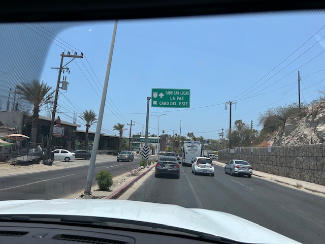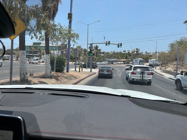 Go straight through, following the signs to Los Zacatitos, Zac’s Bar and Grill, or Coastal Properties of Cabo.